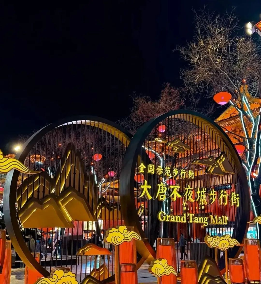 夜幕下的大唐不夜城,华灯璀璨,汉服巡游、非遗展演勾勒出盛唐的绝代风华。同学们漫步其间,感受着“九天阊阖开宫殿,万国衣冠拜冕旒”的盛唐气象。盛唐的开放与包容启示我们:在全球化浪潮中,青年需以开阔的视野接纳多元文化,同时坚守中华文化立场,做文明交流互鉴的推动者。