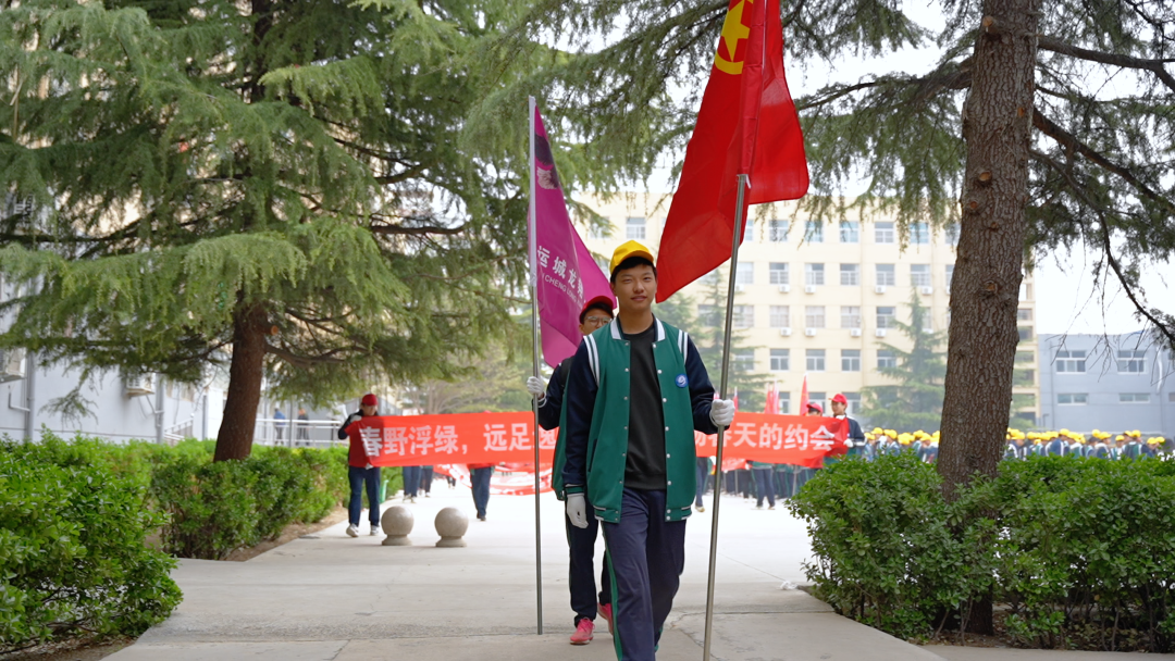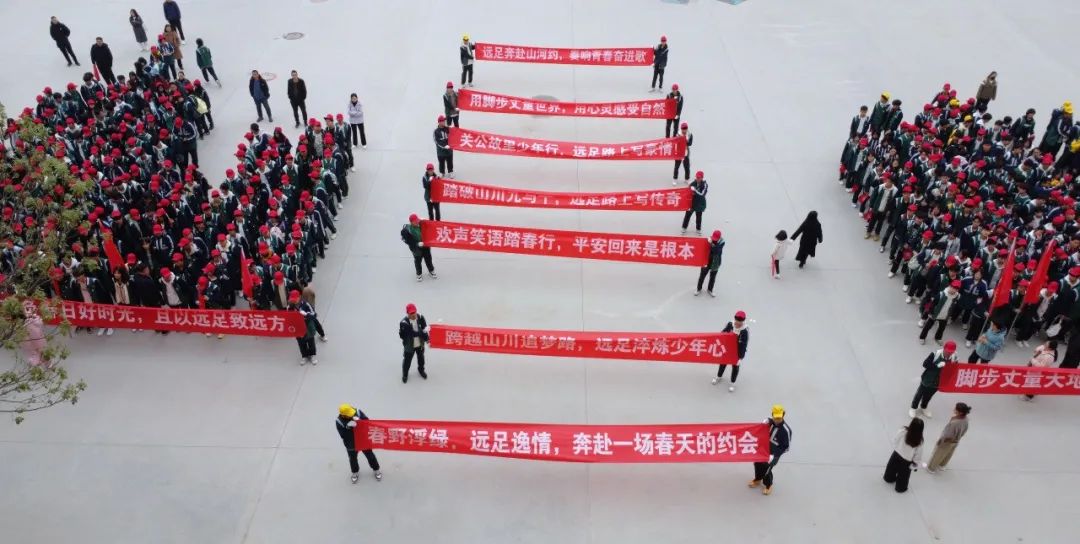 校长谭俊民将象征着信念与责任的远足旗帜交予学生代表,一句“出发”点燃全场激情。千余学子胸中"读万卷书、行万里路"的信念,此刻化作踏破层云的铿锵步履。