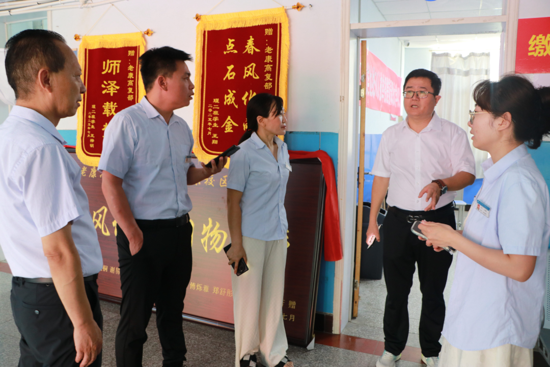 龙翔教育集团党组书记、副总裁、常务校长景建利,龙翔教育集团总顾问王国兴,东校区校长谭俊民等校委会成员深入报到现场巡查,目光聚焦于流程细节:时而驻足观察咨询台的应答效率,时而叮嘱工作人员优化缴费环节,始终以“严格把关、流程便捷”为标准,确保报到各环节衔接顺畅。